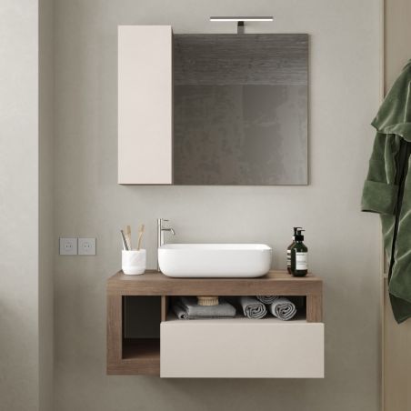 Meuble Vasque 92cm suspendu 1 tiroirs beige laqué et aspect bois finition Mercure de la gamme Arturo.