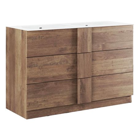 Conçu en panneaux de particules haute densité. Revêtement mélaminé aspect bois de première qualité. Eclairage miroir inclus. Vasque en céramique.