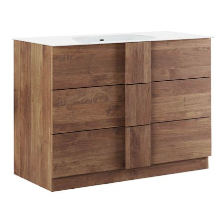 Conçu en panneaux de particules haute densité. Revêtement mélaminé aspect bois de première qualité. Eclairage miroir inclus. Vasque en céramique.