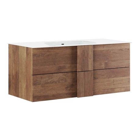 Apportez chaleur et élégance à votre salle de bain avec cette finition bois authentique pour un espace apaisant. Un superbe ensemble meuble sous vasque à suspendre au mur avec vasque, miroir avec rangement et éclairage Led.