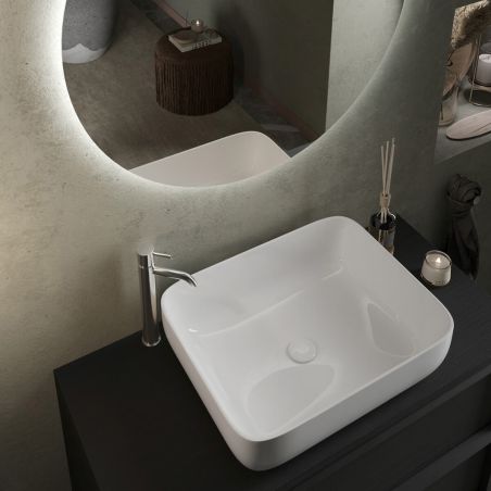 Conçu en panneaux de particules haute densité. Revêtement mélaminé aspect bois de première qualité. Vasque en céramique.