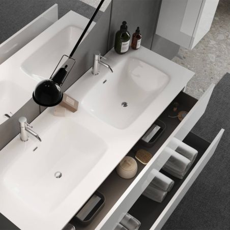 Meuble Vasque 122cm 3 tiroirs finition blanc laqué de la gamme Birja.