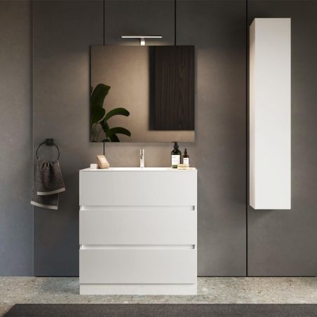 Meuble Vasque 82cm 3 tiroirs finition blanc laqué de la gamme Birja.