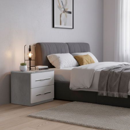 Chevet 2 Tiroirs Blanc et Effet Béton de la gamme Kidomane.