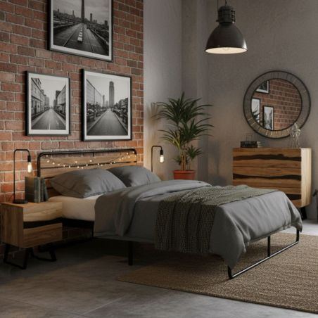 Chevet 2 Tiroirs en Acacia Massif et Métal Noir de la gamme Volska.