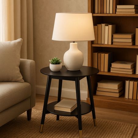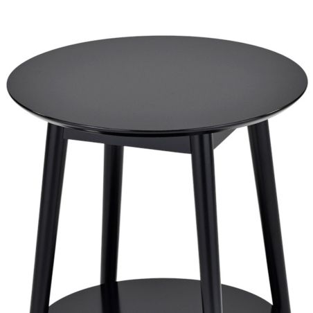 Chevet Rond Laqué Noir 2 Tablettes Détail Doré de la gamme Missy.