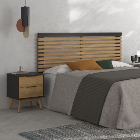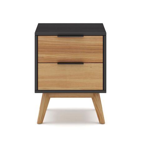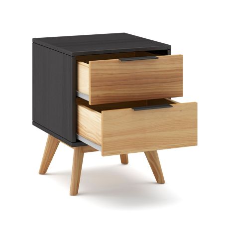 Chevet 2 tiroirs en pin massif ciré et teinté noir - VIKOV.