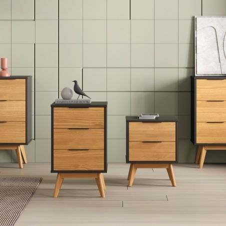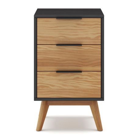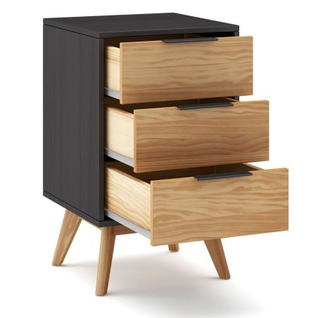 Chevet 3 tiroirs en pin massif ciré et teinté noir - VIKOV.