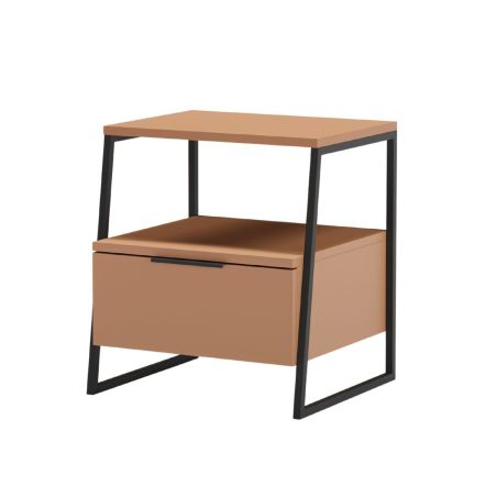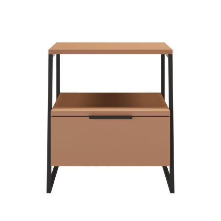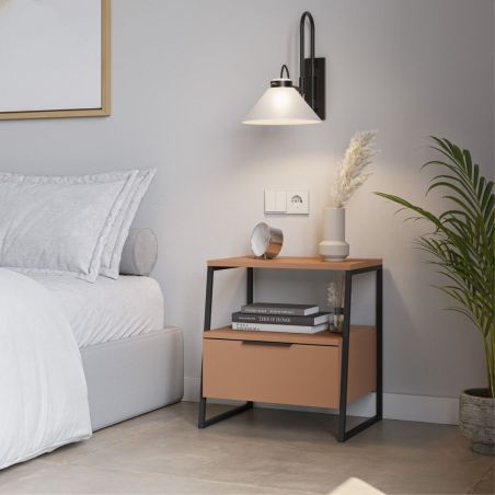 Chevet 2 niveaux avec 1 tiroir en mélaminé terracotta et structure en métal laqué noir - VELIANI.