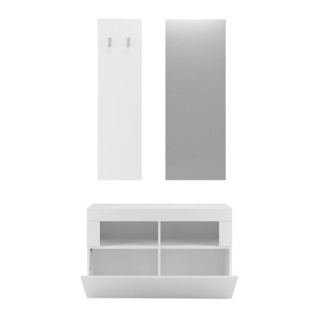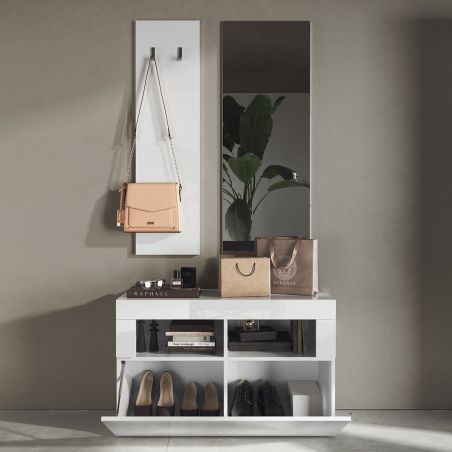 Meuble à chaussures avec miroir et portemanteau muraux Blanc Laqué Weiss - OTELLO.
