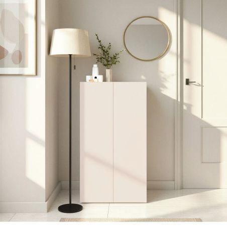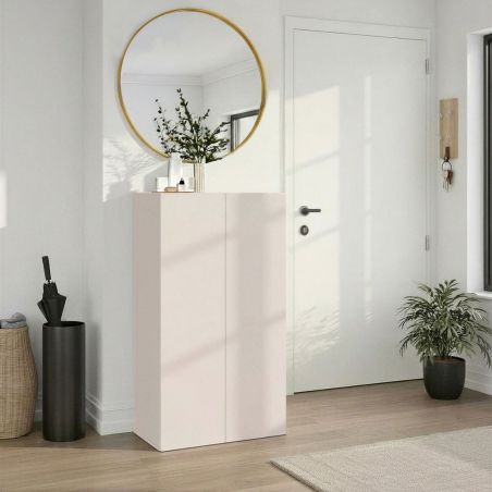 Meuble à chaussures 2 portes et 1 tiroir laqué beige poudré à poser au sol ou à suspendre - PAVEL.
