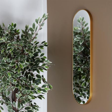Grand miroir doré ovale à accrocher, parfait pour embellir vos murs.