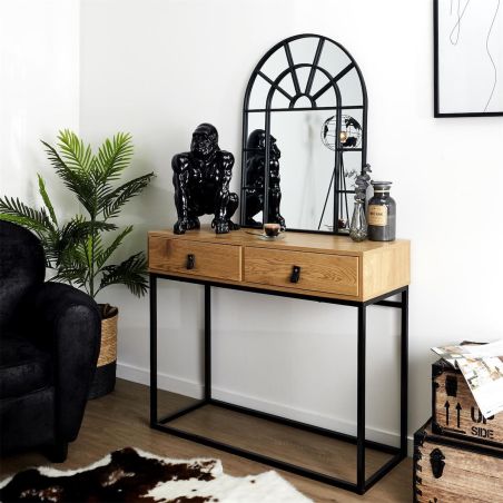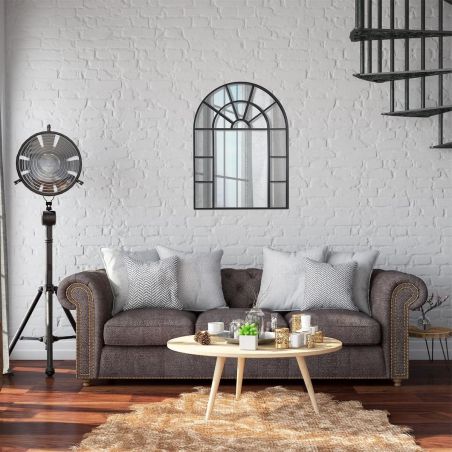 Miroir en verre avec cadre en fer robuste, offrant un design industriel et élégant, parfait pour agrandir visuellement votre espace.