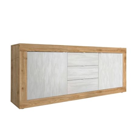 Ensemble Séjour Buffet 2 Portes 3 Tiroirs aspect bois finition Cadiz façades blanc texturées - OTELLO.
