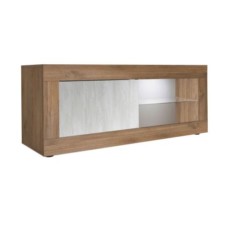 Conçu en panneaux de particules haute densité. Revêtement mélaminé aspect bois et blanc texturé de première qualité. Eclairage led inclus.