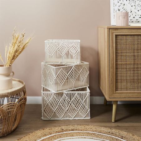 Rangement flexible et élégant grâce au design gigogne, idéal pour organiser vos objets tout en ajoutant une touche bohème à votre décoration.
