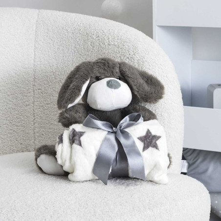 Ce petit chien tout doux deviendra le meilleur ami de votre enfant, et le plaid sont plus doux refuge.