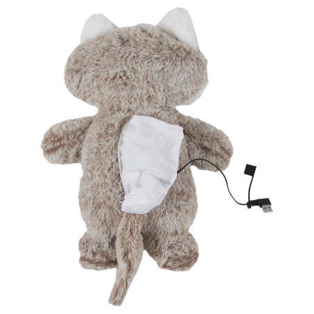 Peluche Chauffante Tissu Ultra Doux Blanc et Taupe H34cm.