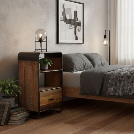 Une gamme de meuble impactante grâce à l'alliance du métal et du bois de récupération. En plus de son look atypique, ce meuble est équipé de 2 niches de rangement, ainsi que d'un large tiroir. Finition vieillie.