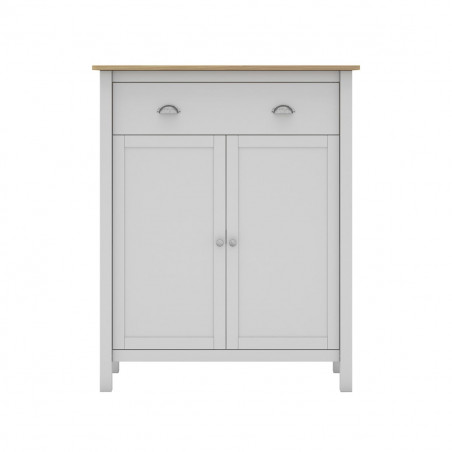 Meuble d'Appoint 2 Portes 1 Tiroir en Pin Massif Naturel et Blanc de la gamme Basco.
