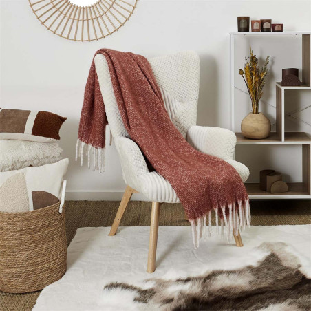 Plaid 120x150cm Chiné Terracotta avec Franges Blanches.