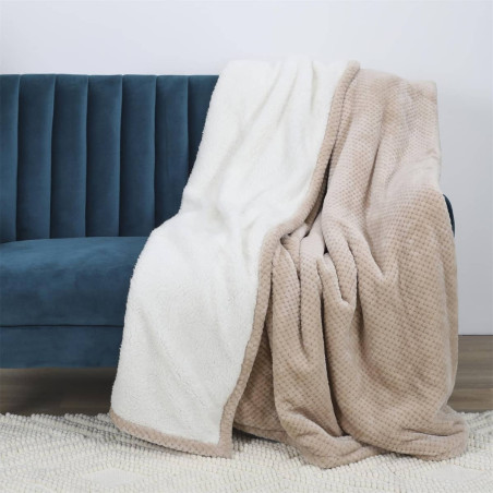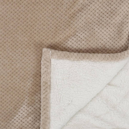 Plaid Ultra Doux 180x220cm Nid d'Abeille Beige et Sherpa.