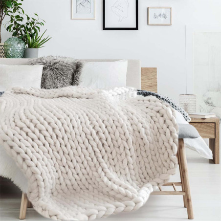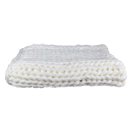 Plaid Chunky 120x150cm Grosse Maille Tressée Coloris Blanc.
