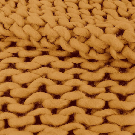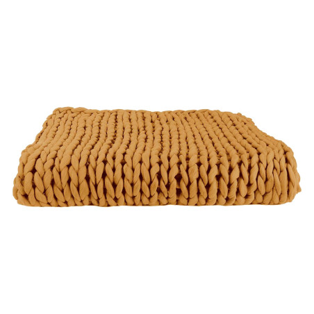 Plaid Chunky 120x150cm Grosse Maille Tressée Coloris Ocre.