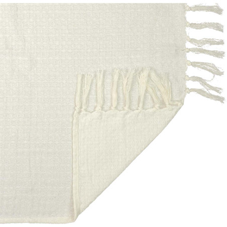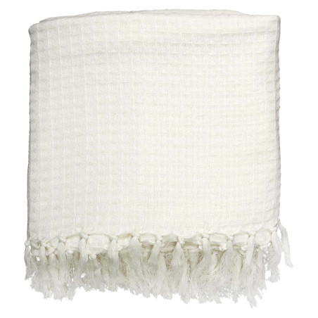 Plaid Jeté de Canapé Gaufré 170x250cm 100% Coton Blanc avec Franges.