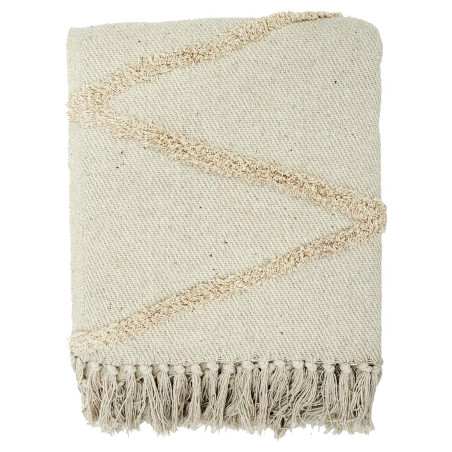 Plaid Jeté Ethnique Tufté 125x150cm Beige Formes Losanges.