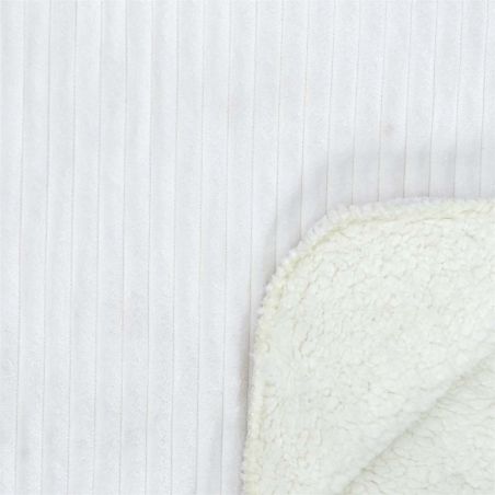 Plaid Flanelle Côtelé 180x220cm Blanc et Sherpa.