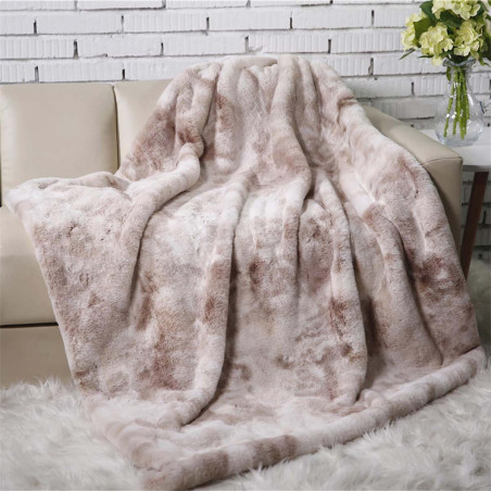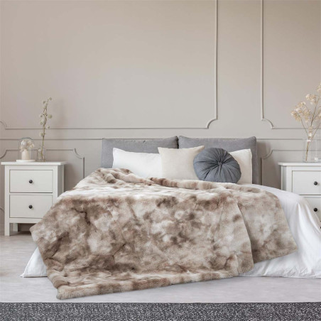 Plaid Ultra Doux 140x200cm Imitation Fourrure Ombrée Coloris Marron et Blanc.
