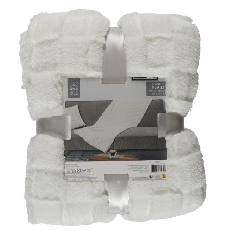 Plaid en flanelle de 120x150 cm avec motif damier blanc et beige, parfait pour ajouter une touche de confort à votre intérieur.
