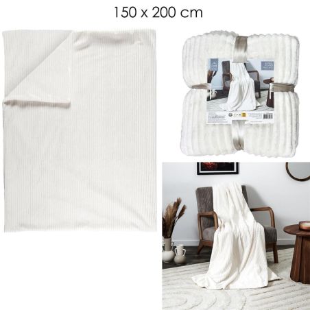 Grand plaid rectangulaire 150x200 cm en flanelle côtelée, idéal pour se blottir lors des journées fraîches.