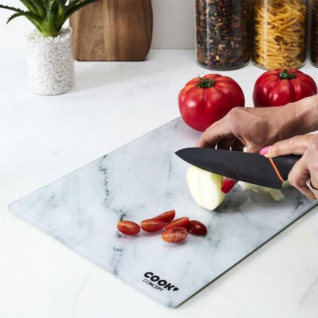 Pour une découpe facilitée de vos aliments, optez pour cette planche à découper en verre ultra esthétique.