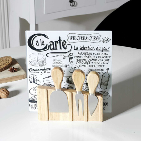 Set Planche à Fromage + 3 Ustensiles Aimantés avec Support Bois.