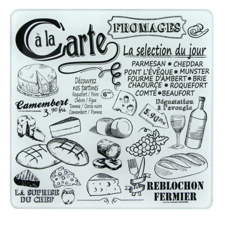 Cette planche en verre au design bien représentatif de la France du terroir pourra accueillir votre sélection de fromages.