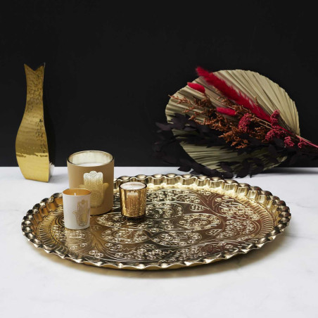 Plateau Décoratif Ø47,5cm en Métal Doré Motif Ornemental.