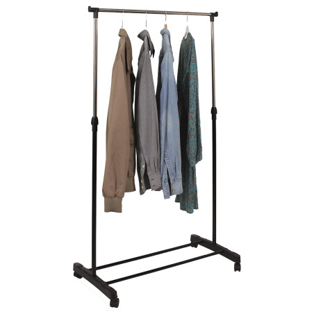Portant Simple sur Roulettes Hauteur Réglable Noir et Chrome.