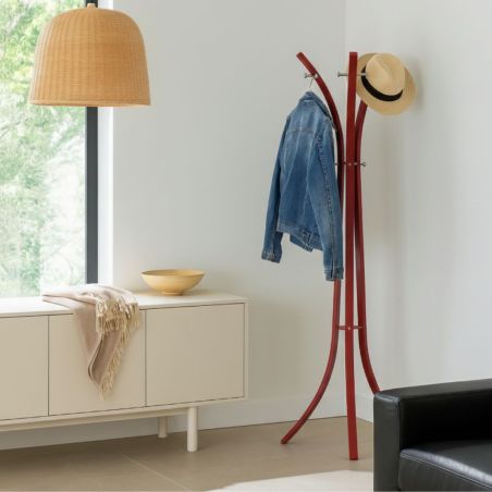 Monté sur 3 pieds en acier laqué avec patère chromée, ce portemanteau au look contemporain dispose de diverses accroches pour accueillir manteaux, vestes et autres accessoires du quotidien. Pratique à l'entrée ou dans un bureau.
