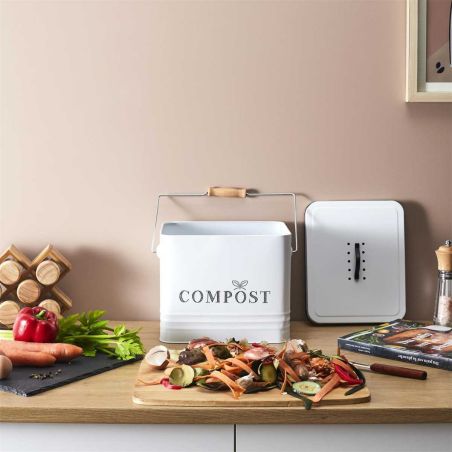 Poubelle à compost de 10L en métal peint avec couvercle et filtre anti-odeur, idéale pour les déchets organiques.