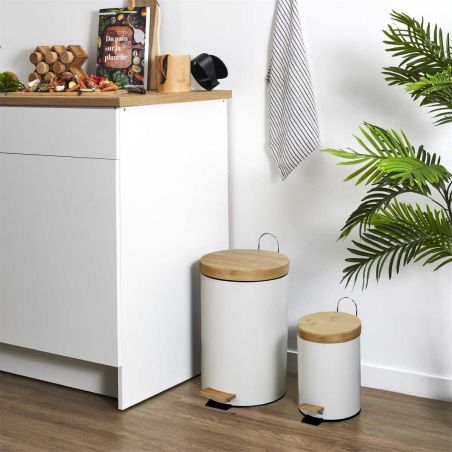 Poubelles à Pédale 12L et 3L en Métal et Bambou Blanc - LITRA