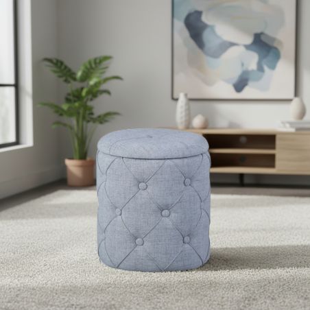 Un Pouf aussi élégant que confortable, possédant un coffre de rangement dissimulé sous son assise, pour éviter les affaires qui trainent.