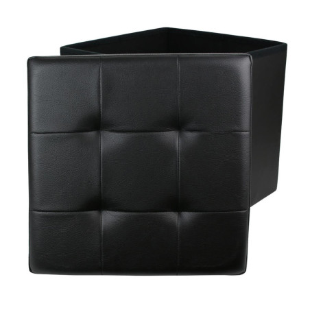 Pouf Coffre Pliable Carré Simili Cuir Noir Capitonné - RONNY