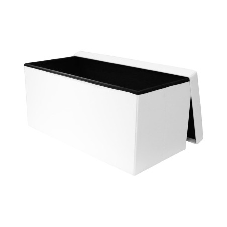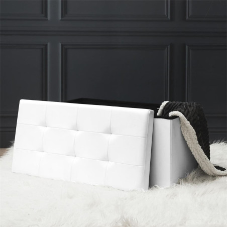 Banc Coffre Pliable Simili Cuir Blanc Capitonné.