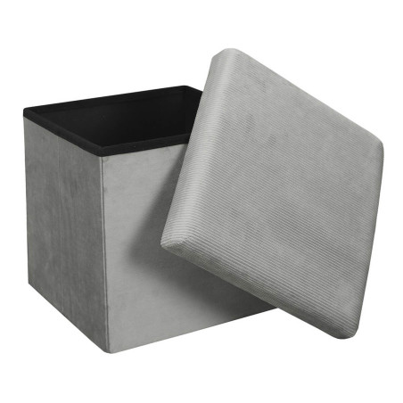 Pouf Coffre Pliable en Velours Côtelé Gris.