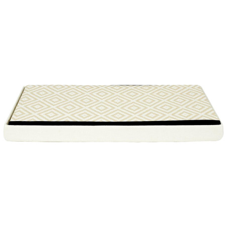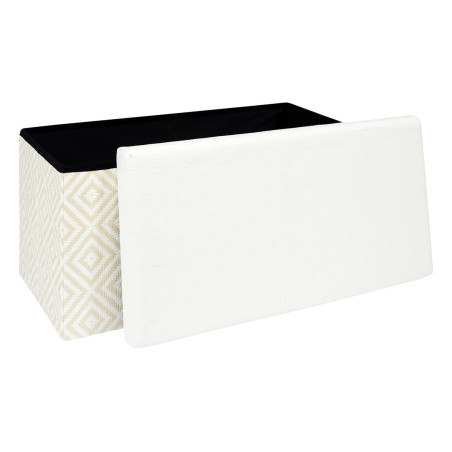 Banc Coffre Pliable Tressé Motif Géométrique Blanc et Beige.