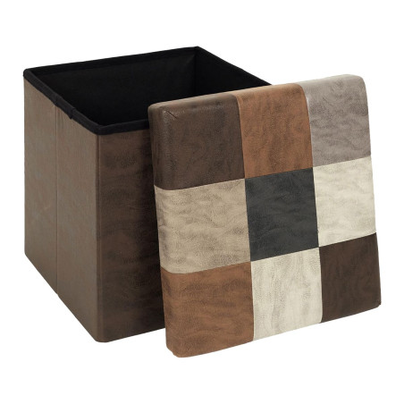 Pouf Coffre Pliable Motif Patchwork Aspect Vieux Cuir.