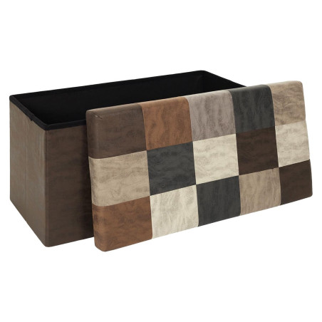 Banc Coffre Pliable Motif Patchwork Aspect Vieux Cuir.