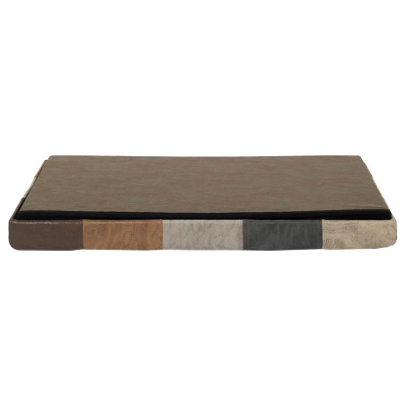 Structure en MDF, revêtement polyester aspect cuir motif patchwork, rembourrage mousse polyuréthane densité 25kg/m3.